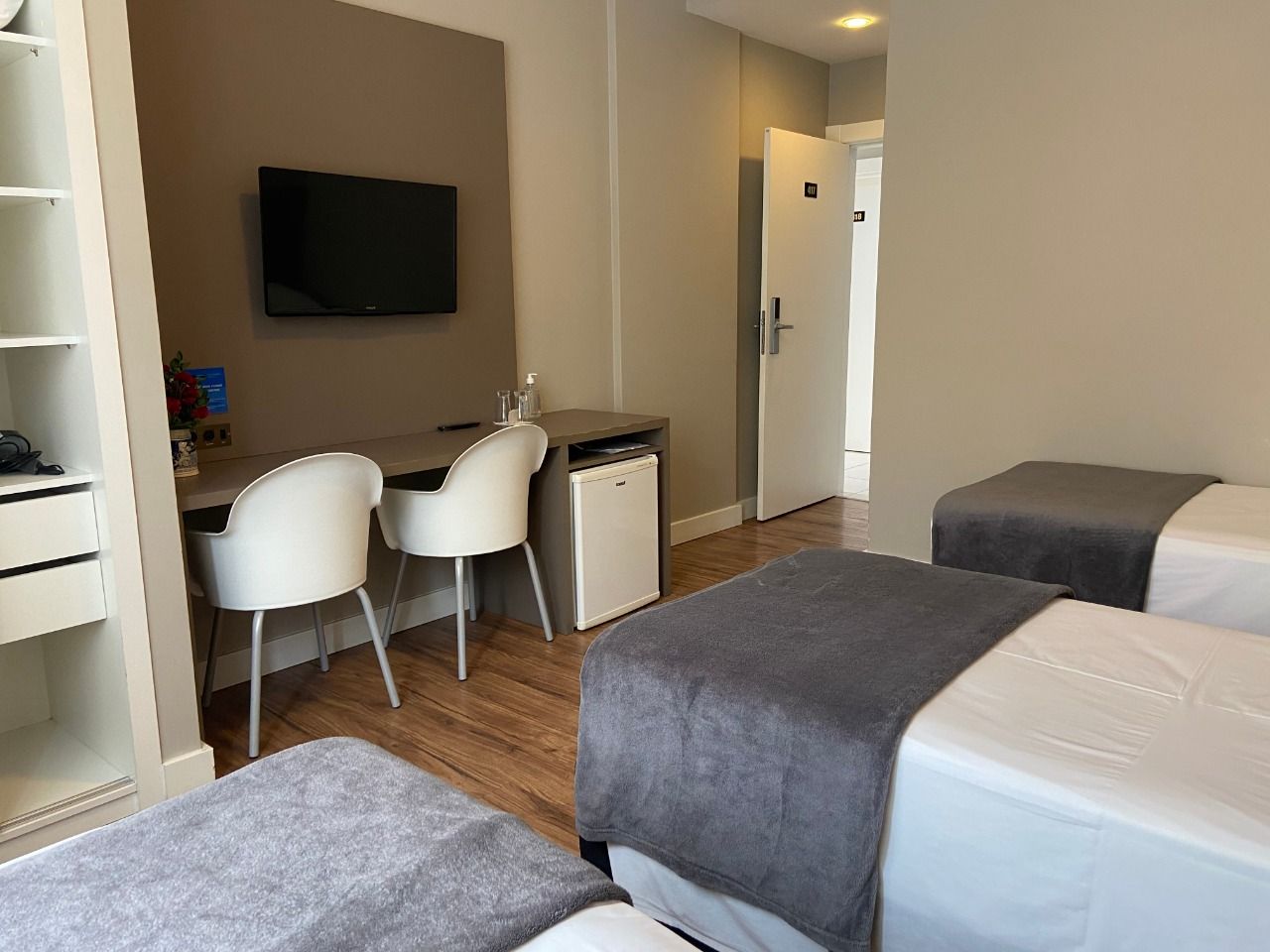Todos nossos quartos possuem TV a cabo, frigobar, ar condicionado e secador de cabelo.